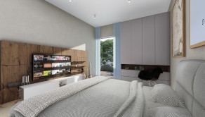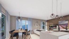 - Apartmán č.3 (prízemie, 108,60 m²): Kuchyňa, jedáleň, obývacia izba, 2 spálne, 2 kúpeľne, terasa, záhrada, 1 parkovacie miesto pri apartmáne, možnosť zimnej záhrady alebo pergoly.