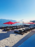 - Súkromná kamenisto-piesočnatá pláž (1200 m²) s lehátkami a slnečníkmi výhradne pre majiteľov apartmánov