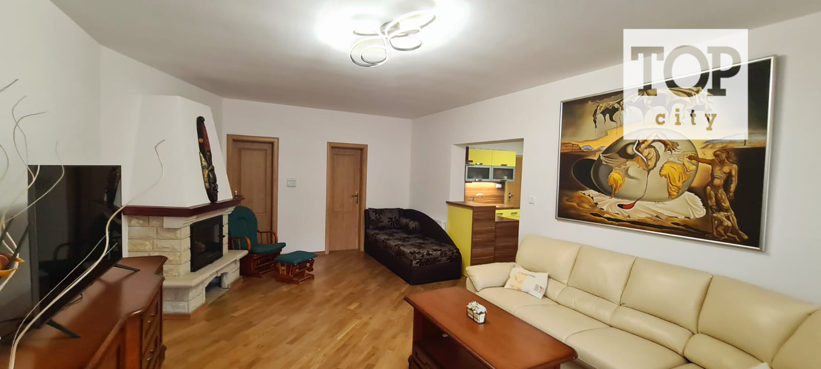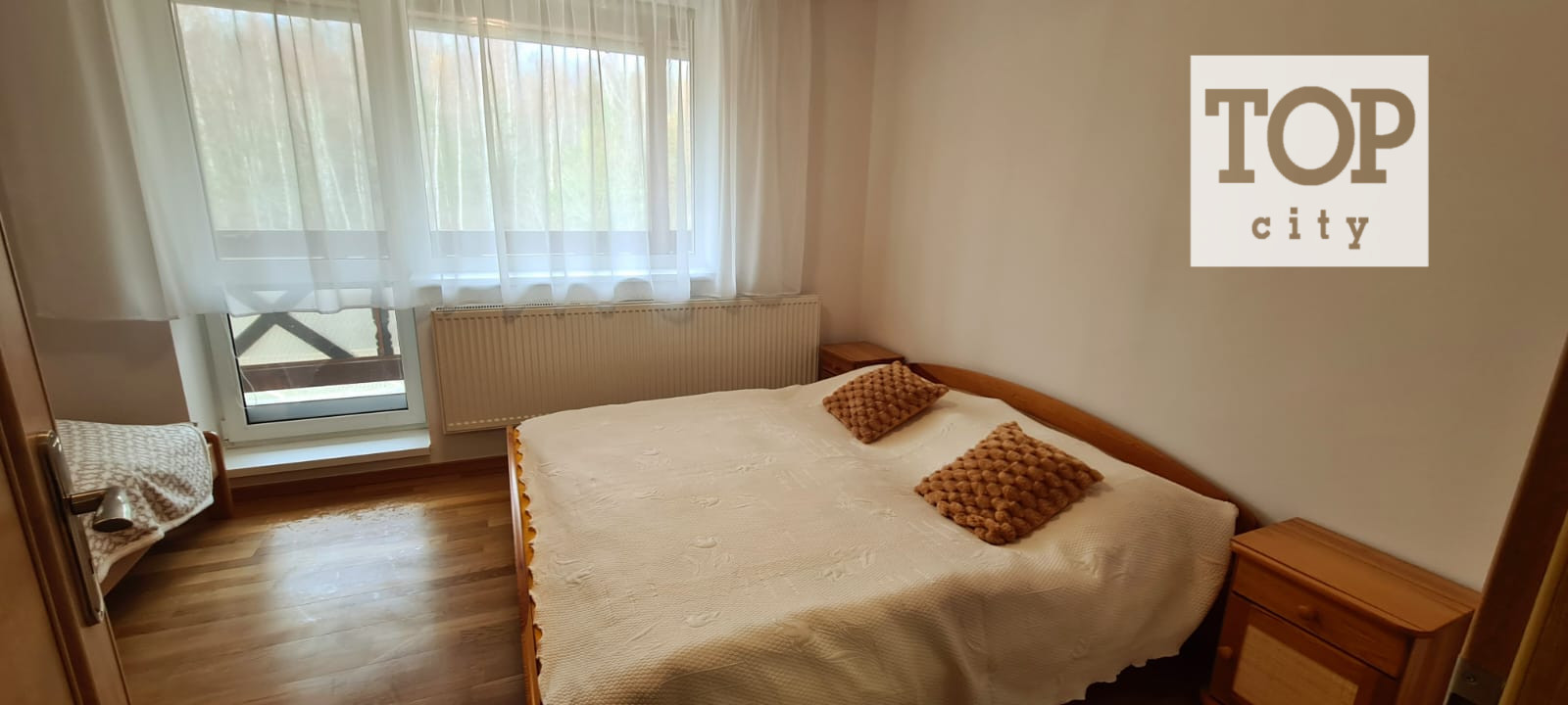 TOP-CITY vo Vysokých Tatrách pod Starým Smokovcom Vám ponúka na predaj 2 izbový Apartmán s krásnym výhľadom na Vysoké Tatry o 66,7 m2 a veľkej terasy 13,8 m2 teda celkom o ploche 80,5 m2 . Nachádza sa na prvom poschodí a pozostáva z priestrannej obývacej izby ,kuchyne ,spálne, kúpeľne a technickej miestnosti. Kúrenie je vlastne na plyn s kotlom Wiessmann. Je luxusne zariadený , nábytok z masívu , kožená sedacia súprava , všetko ako nové bez známok používania .Zariadenie apartmánu je v cene.
