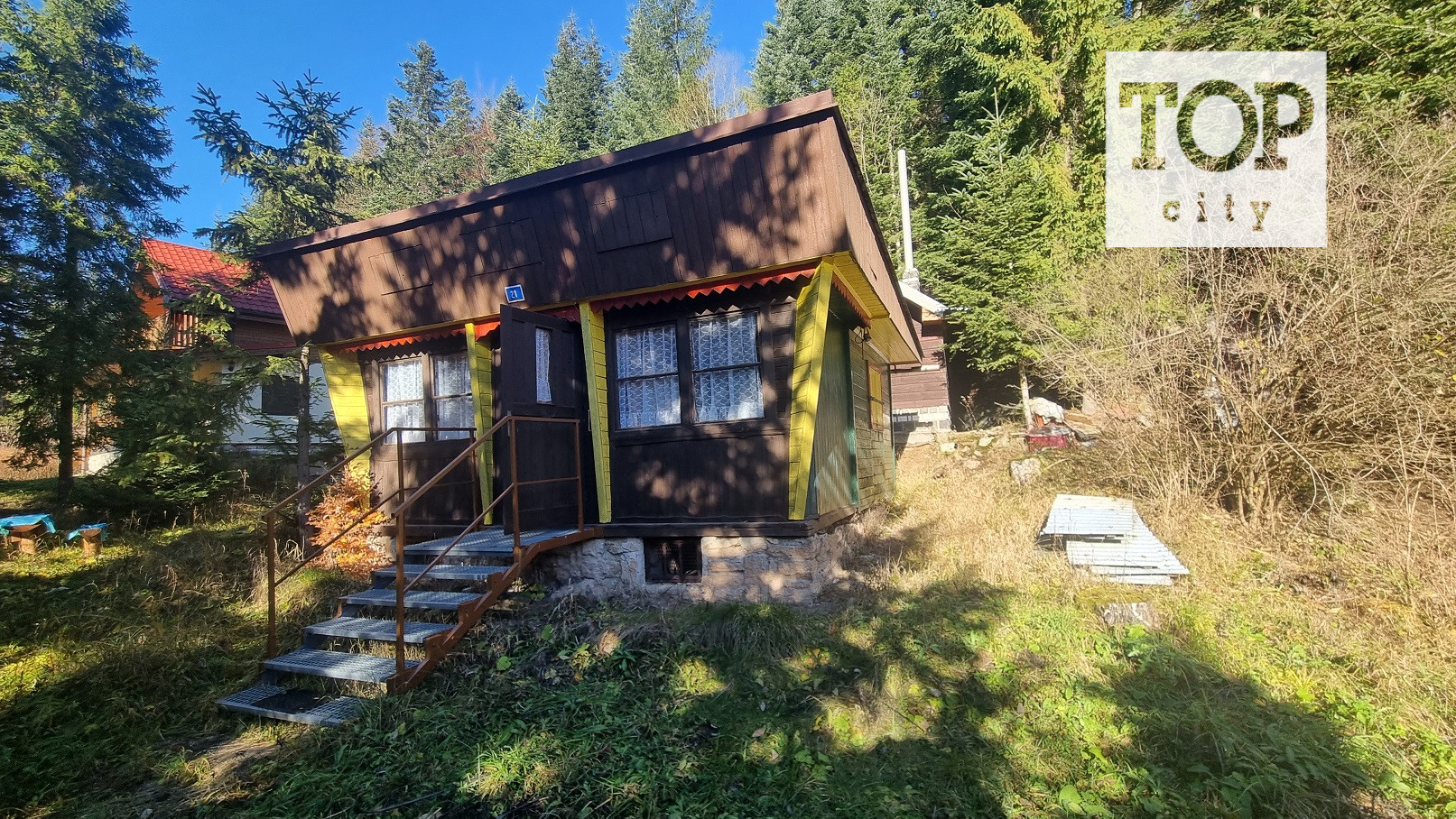 TOP - CITY Poprad v obci Vyšné Ružbachy ponúka na predaj chatku o ploche 30m2. Chatka pozostáva z predsiene ,kuchynského kúta a dvoch izbičiek. Chatka je napojená na elektriku. Kanalizácia a voda v chatke nie je. Chatka je postavená na pozemku patriaci urbárskemu zväzu .Viacej sa o uvedenej ponuke dozviete na tel.čísle 0907 691776 ,alebo na jagersky@topcity.sk