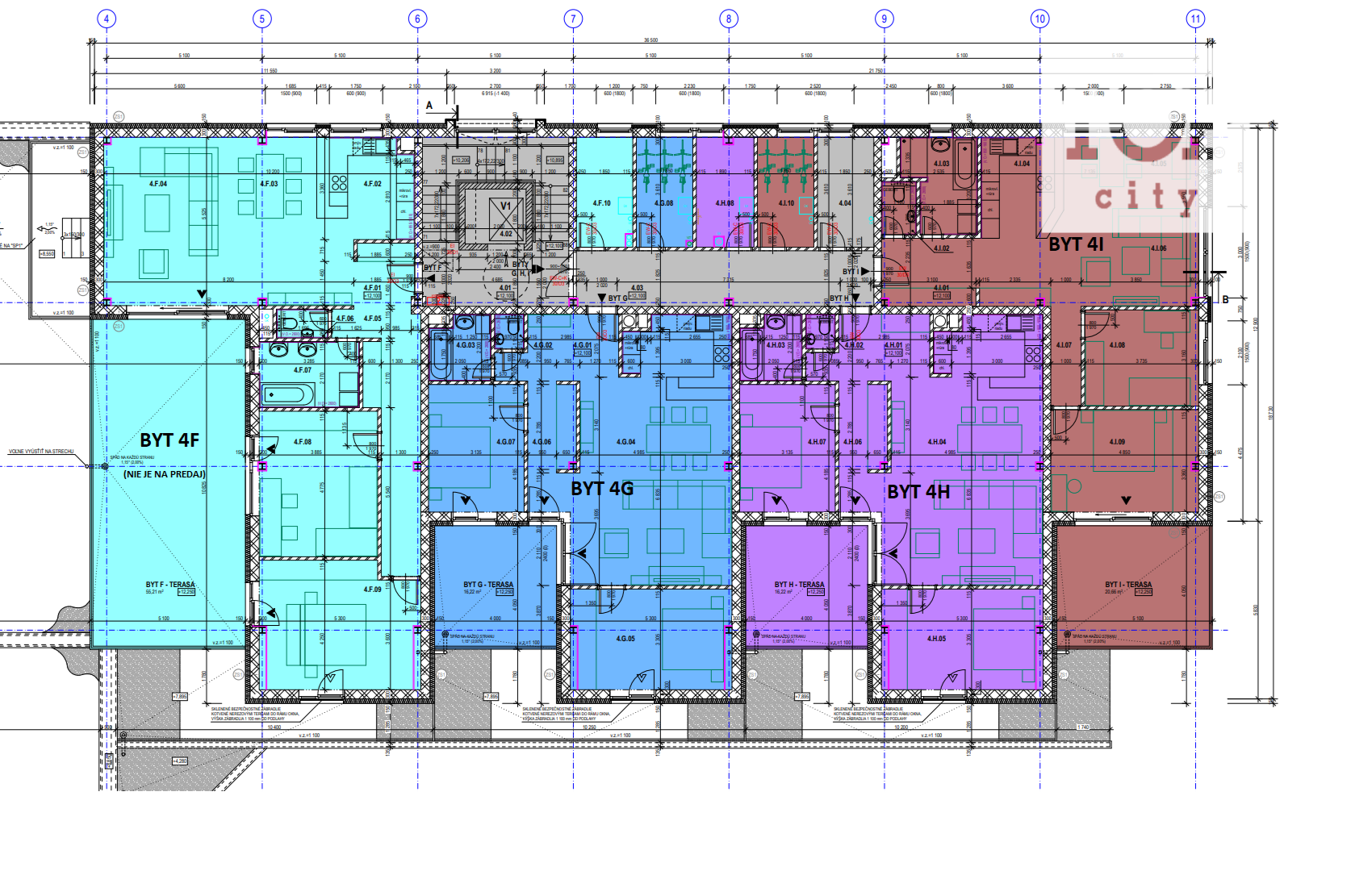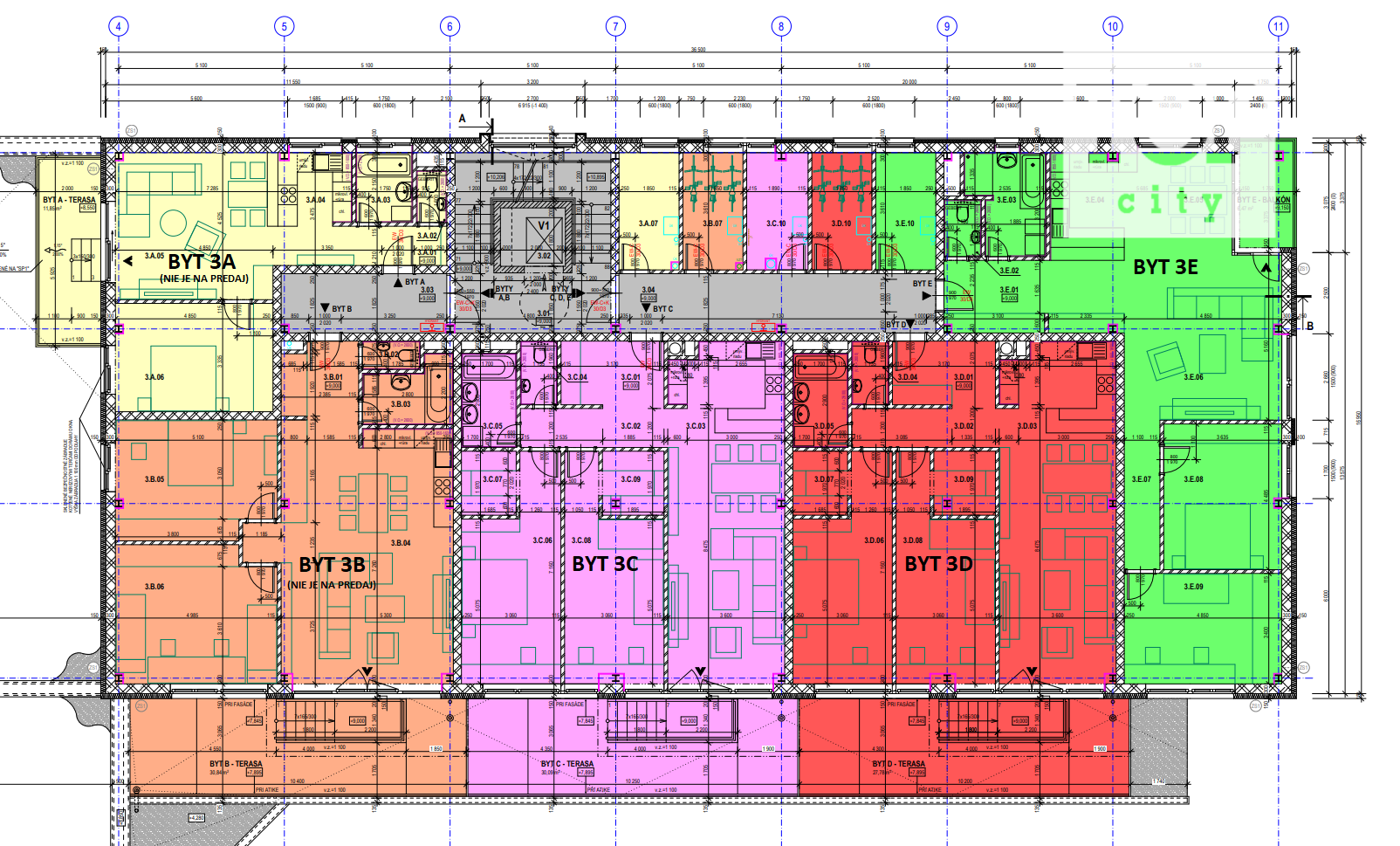 - Plocha bytu: 93,76 m² + terasa otočená na juh 20,66 m² (spolu 114,42 m²)