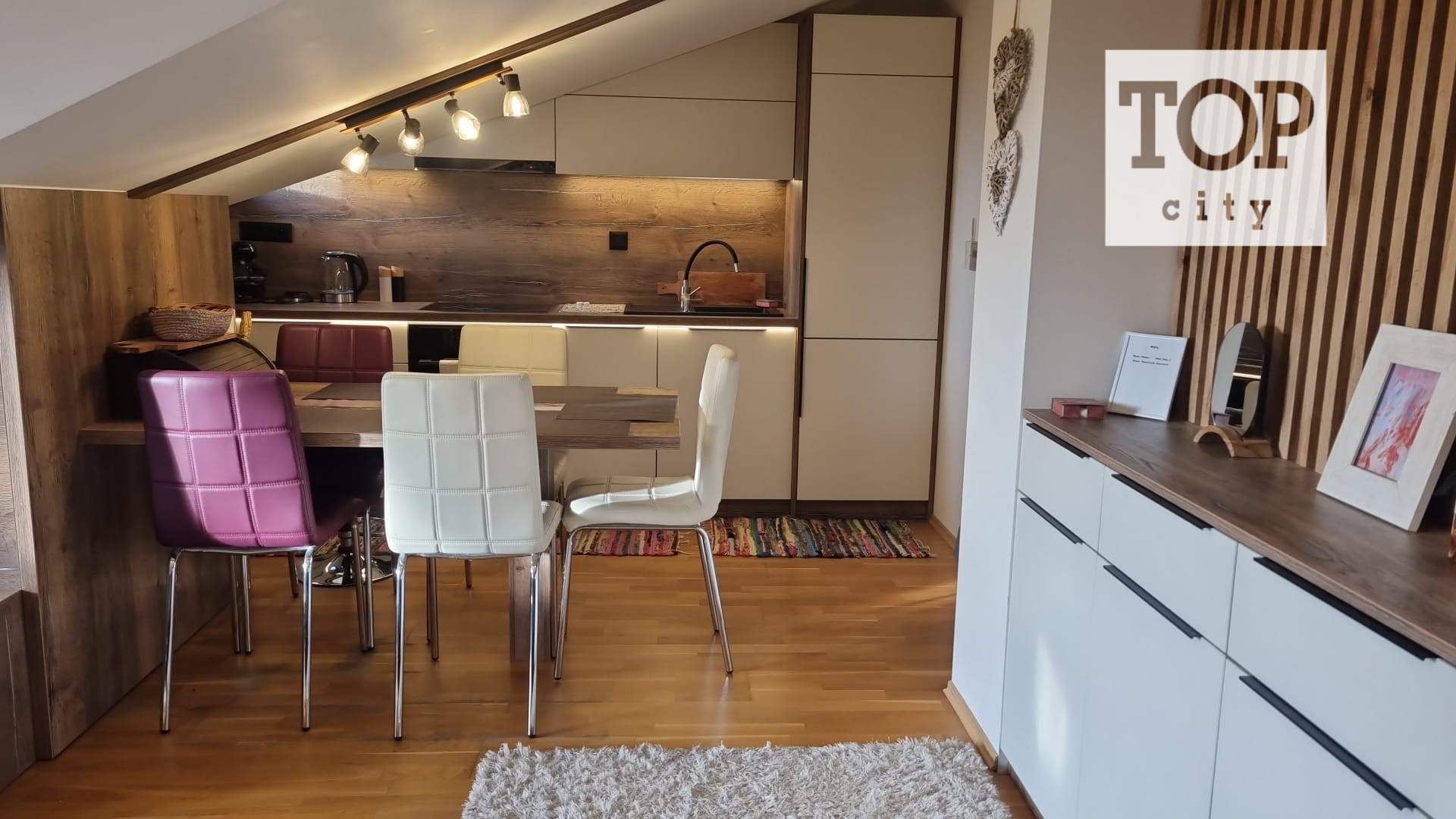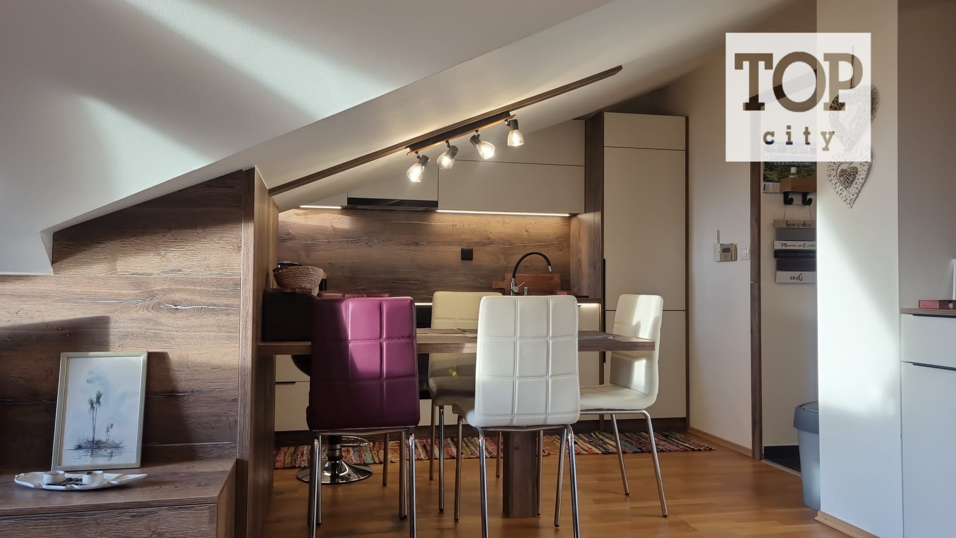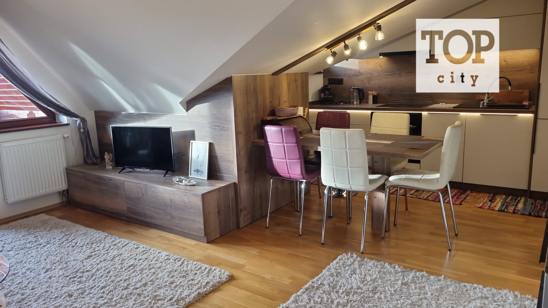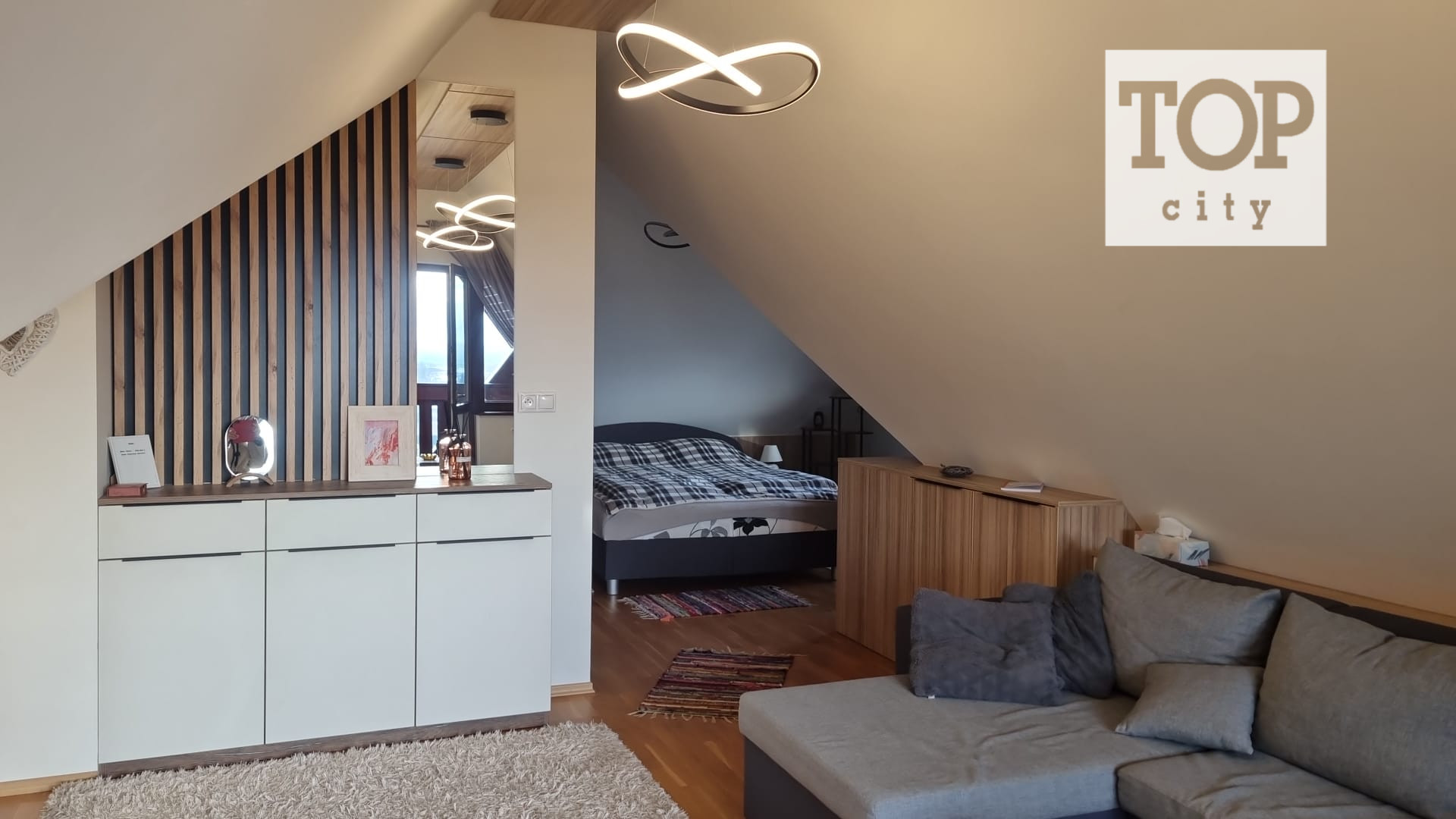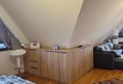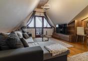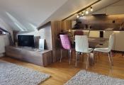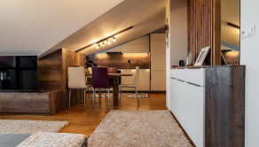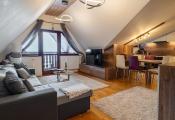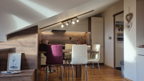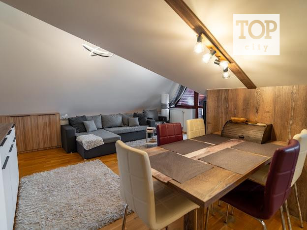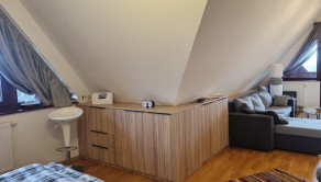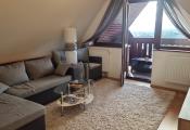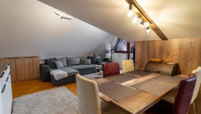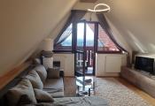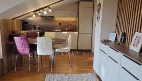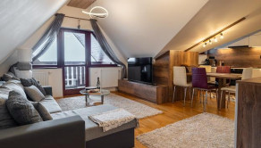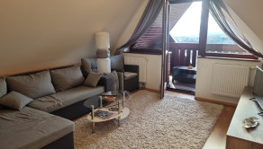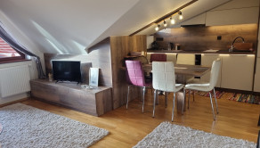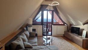 Ide o podkrový byt s krásnym výhľadom na Tatry, ktorý pozostáva z kuchne spojenej s obývačkou, spálne so vstavanými skriňami a balkónom a plne vybavenej kúpeľne.
