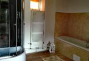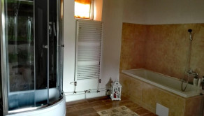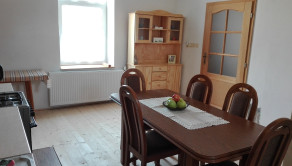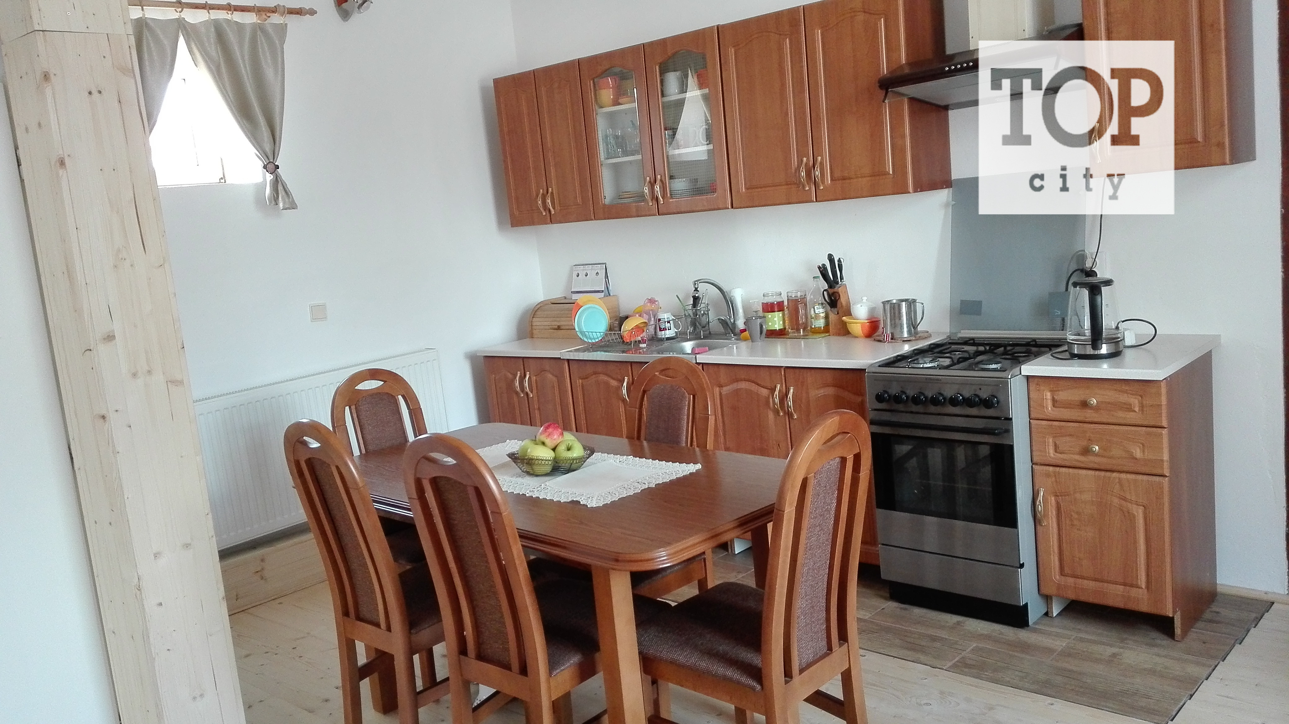 TOP – CITY Poprad v obci Stráne pod Tatrami ponúka na predaj veľký 2 generačný 4 izbový rodinný dom o ploche cca 215 m2 ležiaci na pozemku o ploche 1460 m2. Jedná sa o dvojpodlažný dom pozostávajúci z prízemia a poschodia .Na prízemí sa nachádza vstupná predsieň ,veľká obývačka s barovým pultom ,kuchyňa ,veľká kúpeľňa s vaňou ,sprchovacím kútom a samostatným WC. Ďalej sa na prízemí nachádza spojovacia chodba ,ďalšia izba s kúpeľňou a WC a schodisko na poschodie .Na poschodí sa nachádzajú 2 izby, kuchyňa ,kúpeľňa s WC a povala cca 55 m2.Dom je čiastočne podpivničený cca 80 m2, kde sa nachádza miestnosť s kotlom . Základy domu a pivnica je kamenná no samotný dom je postavený z tehál. V priebehu rokov 2010 až 2015 prešiel výraznou rekonštrukciou ( bola vymenená elektroinštalácia, vodovodne potrubia ,kúrenie) .Podlahy v dome sú drevené v obývačke je plávajúca podlaha v kúpeľniach je dlažba. Je napojený na obecný vodovod, kanalizácia je riešená formou septiku ,plyn je v dosahu domu. Kúrenie je ústredné na pevne palivo , drevo, alebo pelety. V kúpeľniach je podlahové kúrenie. Na veľkom pozemku sa nachádza dvoj garáž, malá šopa na drevo, a letný domček. Viacej sa o uvedenej nehnuteľnosti dozviete na tel. čísle 0907 691776,alebo na jagersky@topcity.sk.