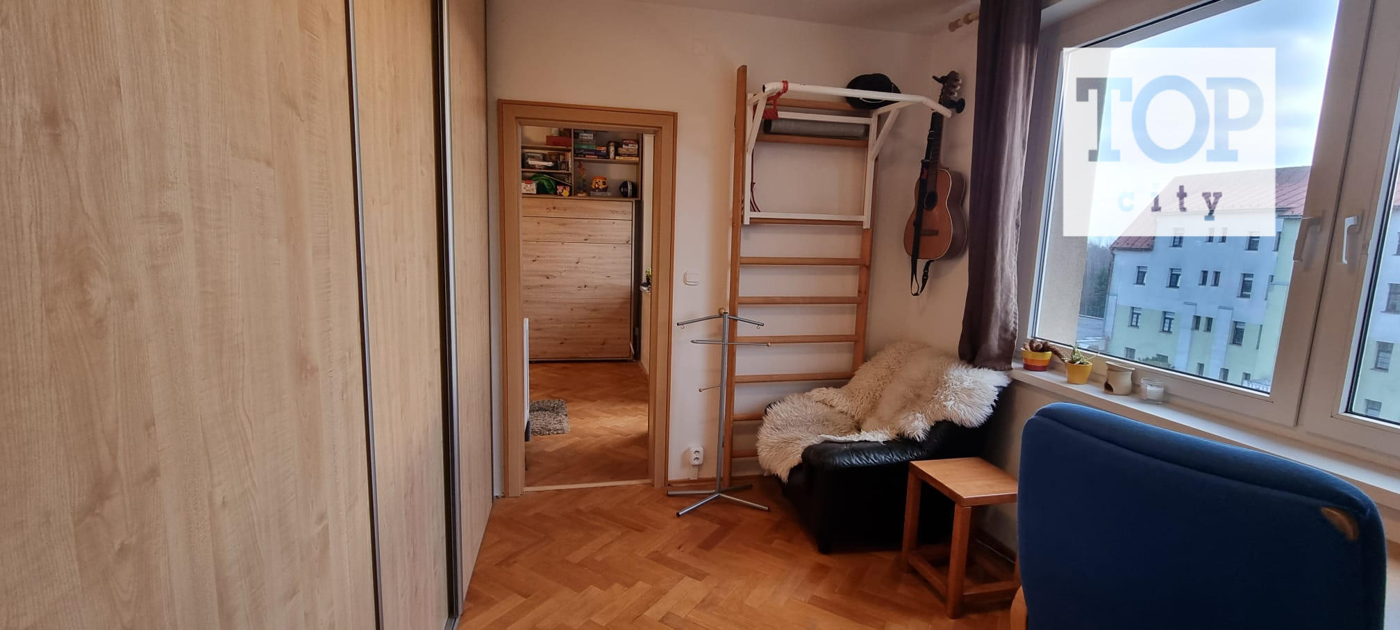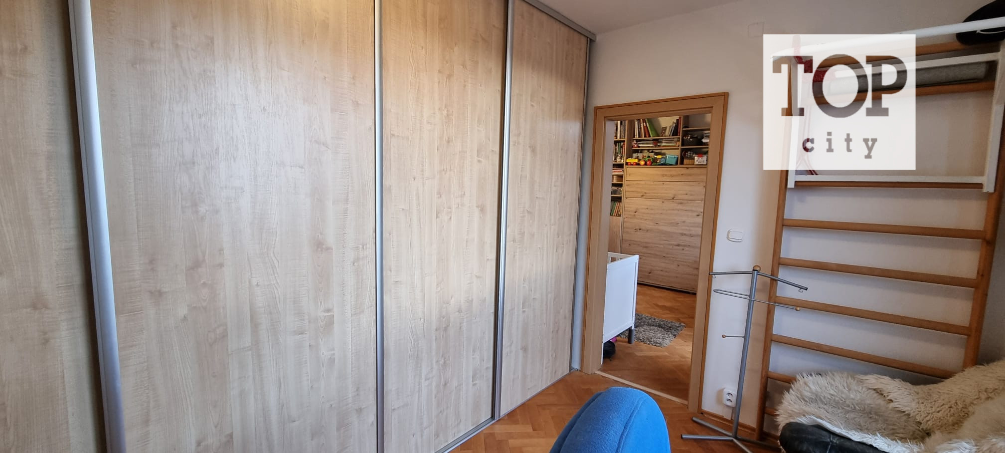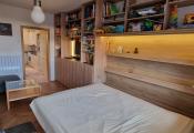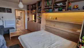 V ďalšej izbe je vstavaná šatníková skriňa na mieru.