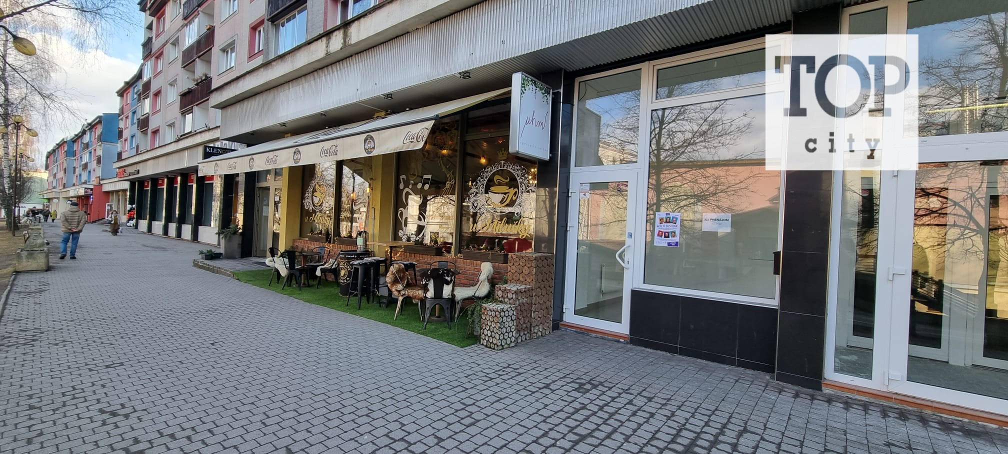 Priestor má hlavný vstup priamo z ulice a veľké výkladové okná, ktoré zabezpečujú výbornú viditeľnosť a ideálny kontakt so zákazníkmi. Významnou výhodou je aj poloha oproti Kinu Tatran, čo prináša vysoký pohyb ľudí počas celého dňa.