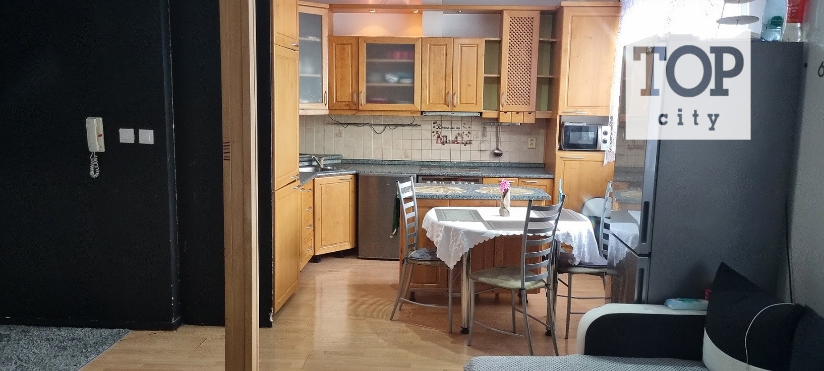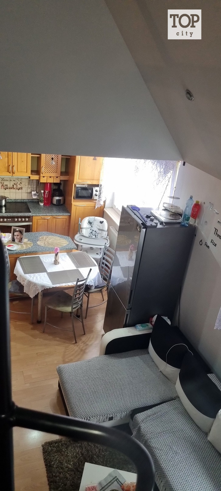 TOP – CITY Poprad v Poprade na sídlisku starý Juh ul. Ludvíka Svobodu ponúka na predaj 2 izbový byt o ploche 65 m2, nachádzajúci sa na prízemí tehlového bytového domu postaveného v roku 2001. Byt s orientáciou S/J pozostáva z veľkej kuchyne spojenej s obývacou izbou, spálne , murovanej kúpeľne spojenej s WC a chodby so vstavanými skriňami. V obývacej izbe a spálni sú znížené stropy, čím v obývacej izbe vznikla galéria ( mezonet ) s možnosťou využitia ako spalne, no skôr pre deti. V spálni vznikla obdobná galéria ,s využitím skôr ako ukladací priestor. V byte sú plávajúce podlahy v kúpeľni je dlažba. Okná sú plastové, v spálni je francúzsky balkón. V byte zostávajú vstavané spotrebiče (chladnička, pračka, mikrovlnka, televízor).Viacej sa o uvedenej ponuke dozviete na tel. čísle 0907 691776, alebo na jagersky@topcity.sk.